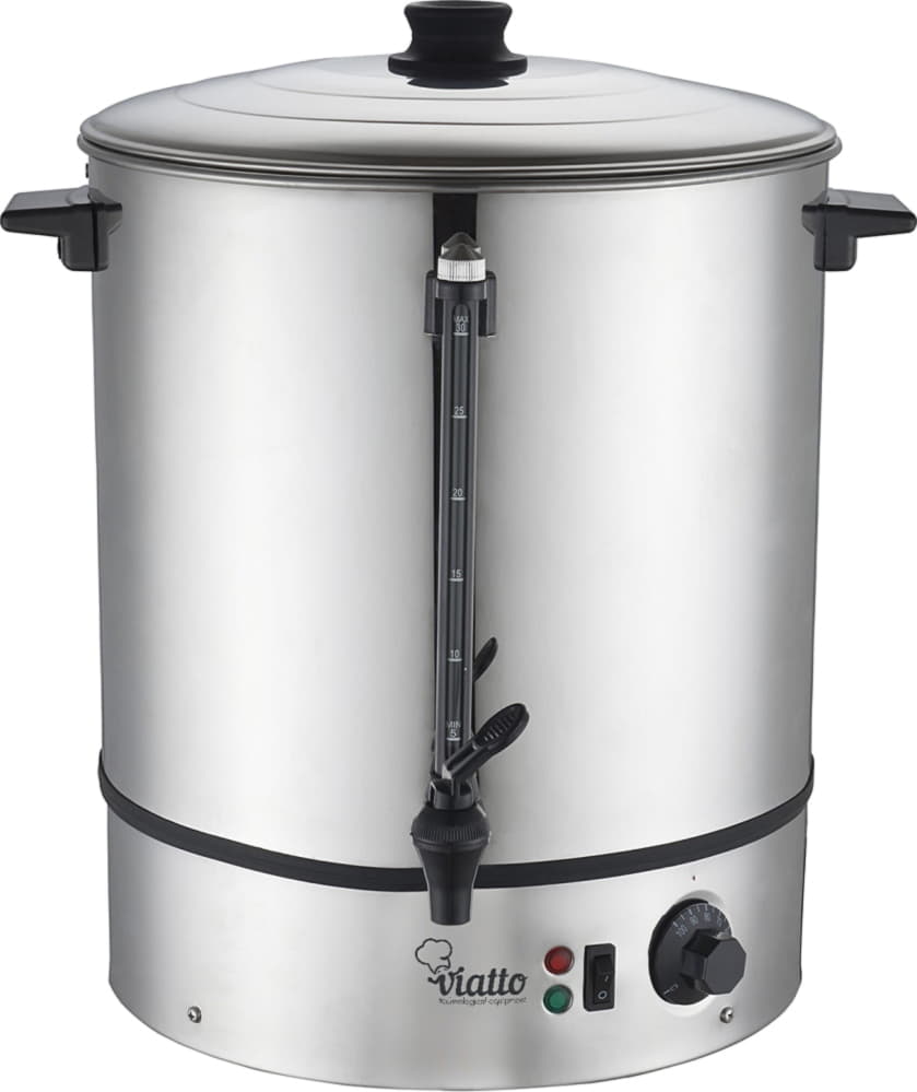 Наливной кипятильник VIATTO VA-WB30SS предназначен для нагрева и кипячения воды, а также поддержания её в горячем состоянии. Оснащён терморегулятором, закрытым ТЭНом и одинарными стенками. Есть мерное стекло, позволяющее отслеживать уровень воды. Благодаря удобным ручкам оборудование можно легко переносить. Корпус изготовлен из нержавеющей стали.
