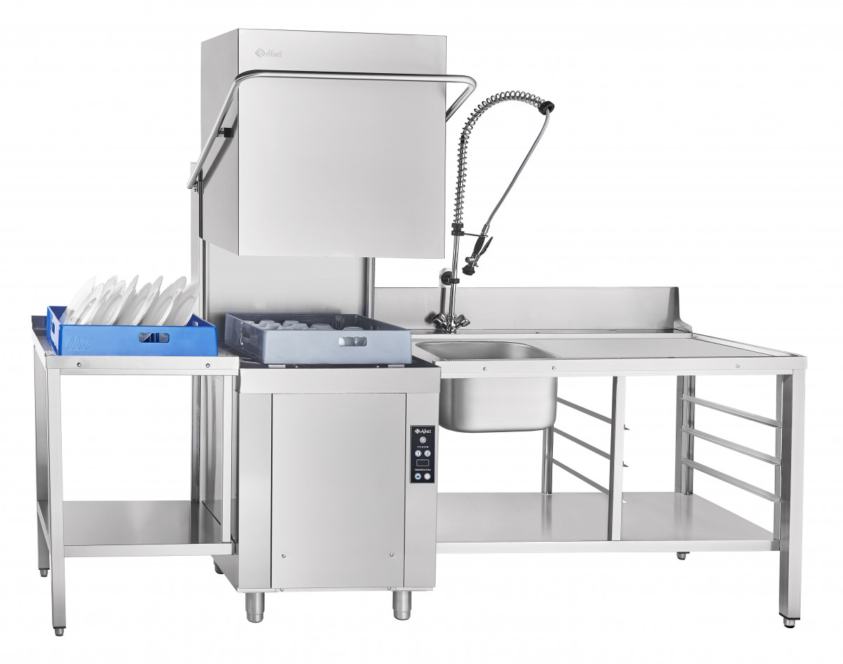 - Производительность: до 700 тарелок в час, что обеспечивает быструю и качественную мойку.
