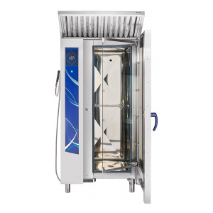 Камера пароконвектомата защищена от влаги по стандарту IPX5, что позволяет мыть ее под струей воды. Устройство предлагает 6 режимов автоматической мойки, совместимых с жидкими и твердыми моющими средствами. Температурный контроль осуществляется с точностью до +/-1 °С, а система охлаждения слива предотвращает накопление конденсата.