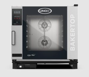 Устройство оснащено шестью уровнями для противней размером 600x400 мм, что позволяет готовить одновременно множество блюд. Удобная 9,5-дюймовая сенсорная панель управления обеспечивает интуитивно понятное программирование и возможность сохранения до 364 различных рецептов, что значительно упрощает процесс приготовления.