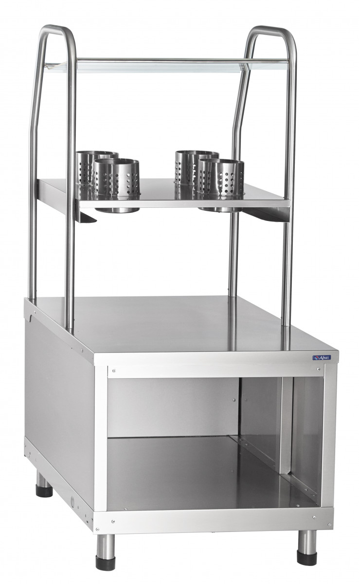 Прилавок для столовых принадлежностей с хлебницей Аста Abat ПСПХ-70КМ представляет собой функциональное решение для организации раздачи столовых приборов и подносов, а также хлеба. Этот модуль, выполненный в современном дизайне, имеет следующие габариты:
