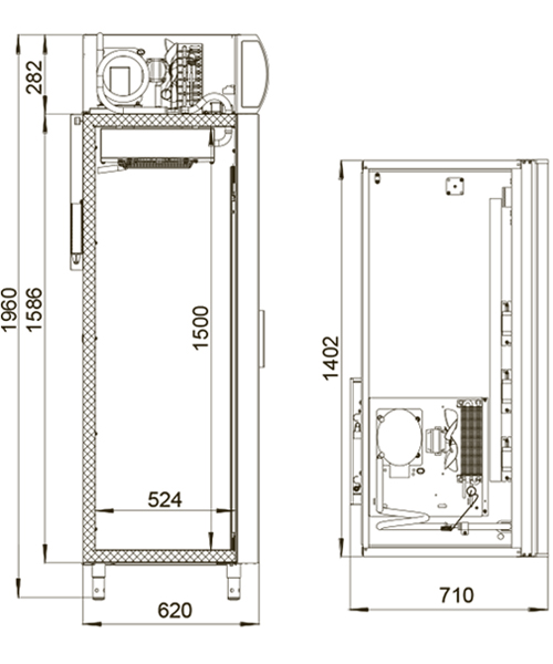 - Габариты: ширина 1402 мм, глубина 710 мм, высота 1960 мм, что позволяет легко интегрировать шкаф в любое коммерческое пространство.
