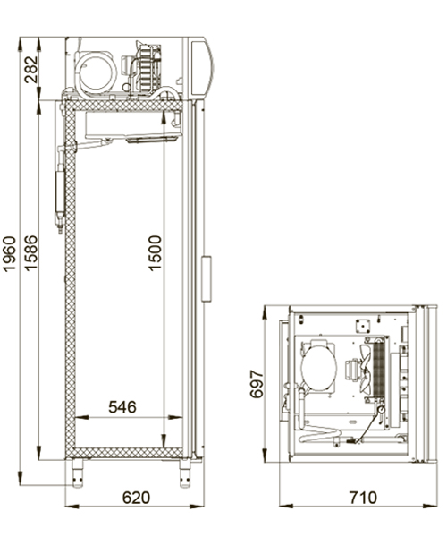 - Автоматическая оттайка с системой испарения конденсата освобождает персонал от лишних забот.