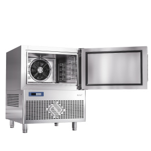 Технология шоковой заморозки, применяемая в данном устройстве, позволяет значительно продлить срок хранения продуктов. На Западе такие устройства известны как фризеры (shock freezer) для заморозки и бласт чиллеры (blast chiller) для охлаждения. Основное преимущество этой технологии заключается в высокой скорости охлаждения, что предотвращает размножение бактерий и обеспечивает стабильный контроль температуры. Это также минимизирует потери массы продуктов, вызванные испарением влаги, что характерно для традиционных методов.
