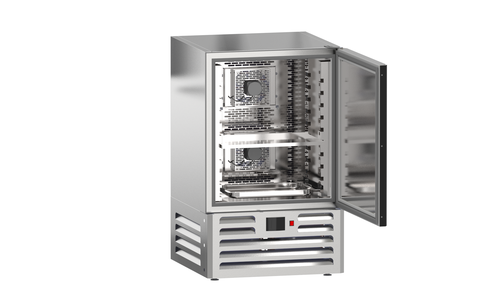Шкаф способен работать в диапазоне температур до -40°C. Агрегат располагается в нижней части устройства, а система электропитания функционирует при 230 В и 50 Гц. Охлаждение осуществляется динамическим способом, а оттайка — автоматически с использованием ТЭНов и системы испарения конденсата. Терморегулятор представлен электронным блоком, а также предусмотрены ПЭН обогрева дверного проема и трубки слива конденсата.