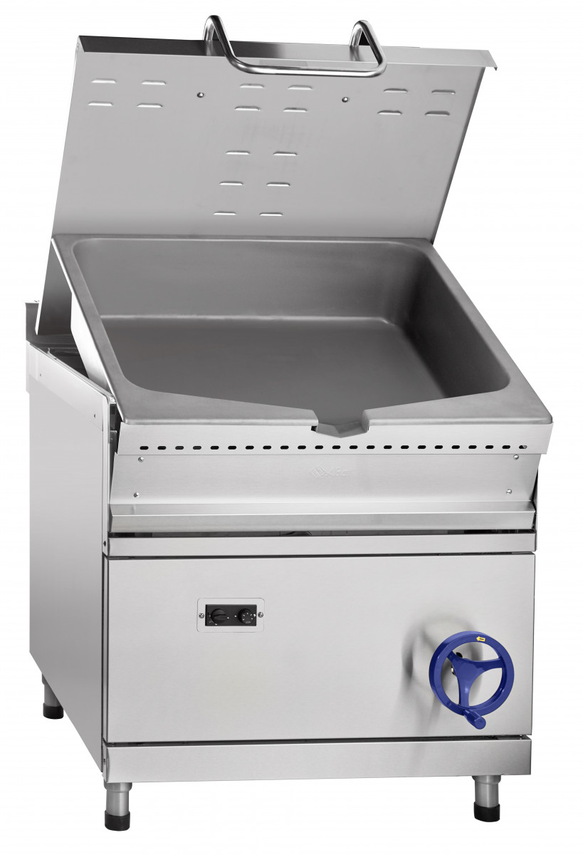Конструкция сковороды включает механизм для подъема и опускания чаши, что значительно упрощает ее очистку и обслуживание. Крышка, которая фиксируется в любом положении, помогает сохранить тепло и ароматы блюд. Боковые и задние панели выполнены из окрашенного оцинкованного металла, что обеспечивает долговечность и надежность устройства. Регулируемые по высоте ножки позволяют установить сковороду на любой поверхности.