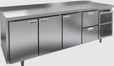 Столешница выполнена из нержавеющей стали, что гарантирует долговечность и легкость в уходе. Толщина столешницы составляет 50 мм, а высота рабочей поверхности – 850 мм, что обеспечивает комфортную работу. Устройство имеет динамическую систему охлаждения и автоматическую оттайку, что упрощает его использование.
