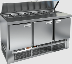 Электронная панель управления позволяет легко настраивать необходимые параметры. Стол может вместить до 8 контейнеров GN1/3, а размеры полок составляют 430х325 мм. В комплект входят три полки, а также предусмотрены регулируемые по высоте ножки, автоматические доводчики дверей с фиксатором открытого положения и легко заменяемые магнитные уплотнители. Продукт произведен в России и имеет гарантию на 12 месяцев.