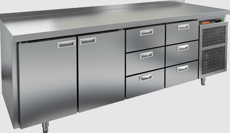 Электронная панель управления позволяет точно настраивать температурные параметры, а автоматическая система оттайки упрощает обслуживание. Стол также оборудован динамической системой охлаждения, что обеспечивает равномерное распределение температуры внутри камеры.