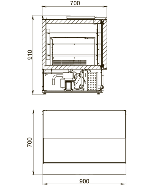 - Холодильный агрегат, расположенный в нижней части, легко выдвигается для обслуживания с фронтальной стороны.