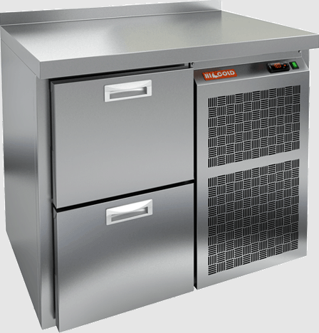 Объем морозильной камеры составляет 175 литров, что делает его идеальным выбором для профессиональных кухонь и предприятий общественного питания. Холодильный агрегат расположен справа, что обеспечивает удобство в использовании. Стол выполнен в соответствии с гастрономическими стандартами, имеет бортик для предотвращения случайного высыпания продуктов.