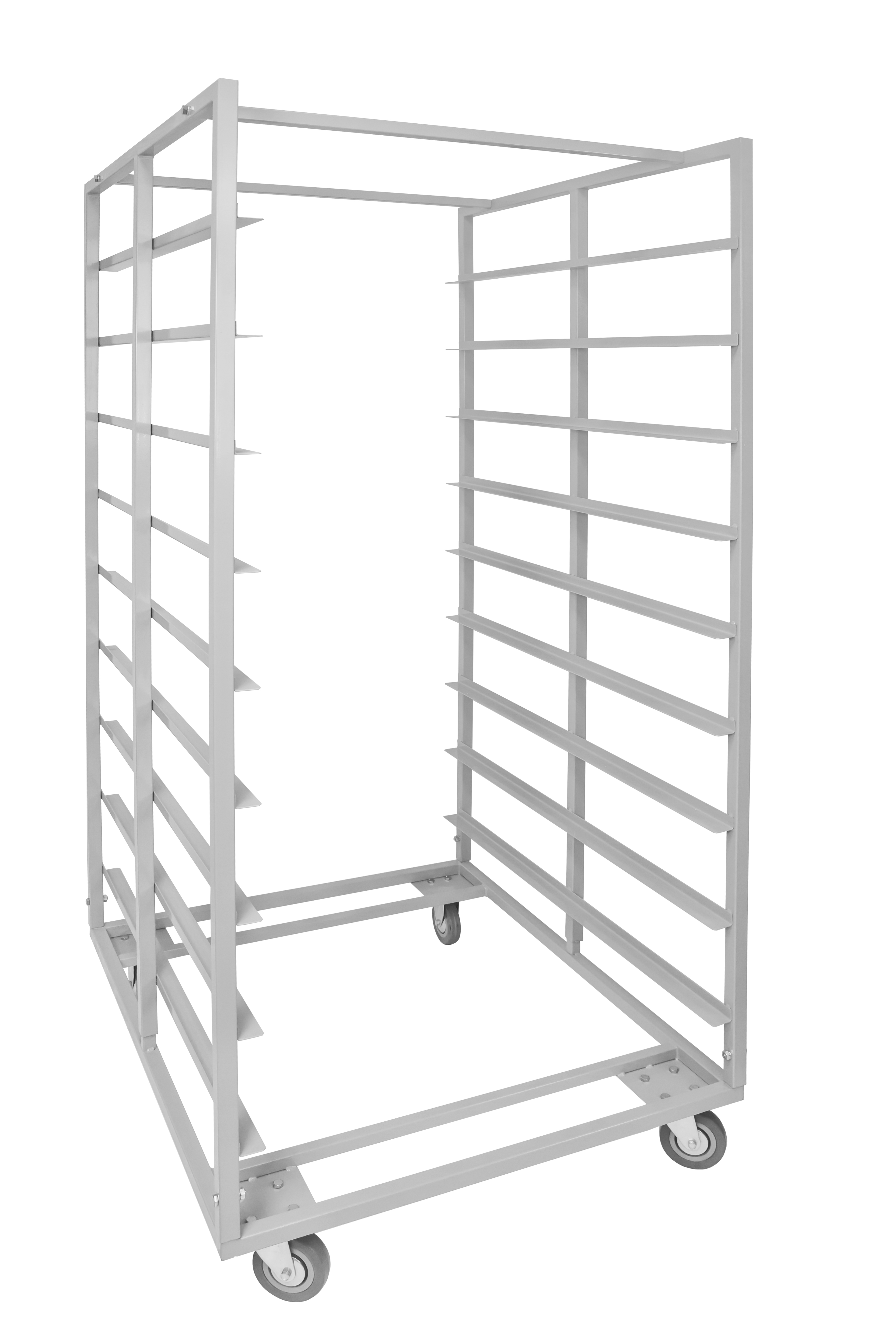 Тележка-шпилька для хлебных лотков Hessen ТШ-9 из нержавеющей стали предназначена для использования в сфере общественного питания и торговли. Она обеспечивает удобное перемещение и хранение хлебобулочных изделий на подносах.