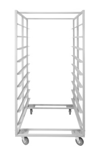 Тележка доступна в двух вариантах: из нержавеющей стали AISI 430 с цельносварной конструкцией и из окрашенной стали с разборной конструкцией. Опорные и боковые рамы соединены перемычками из квадратного профиля 25х25 мм, а стойки из нержавеющей стали имеют размер 30х30 мм.