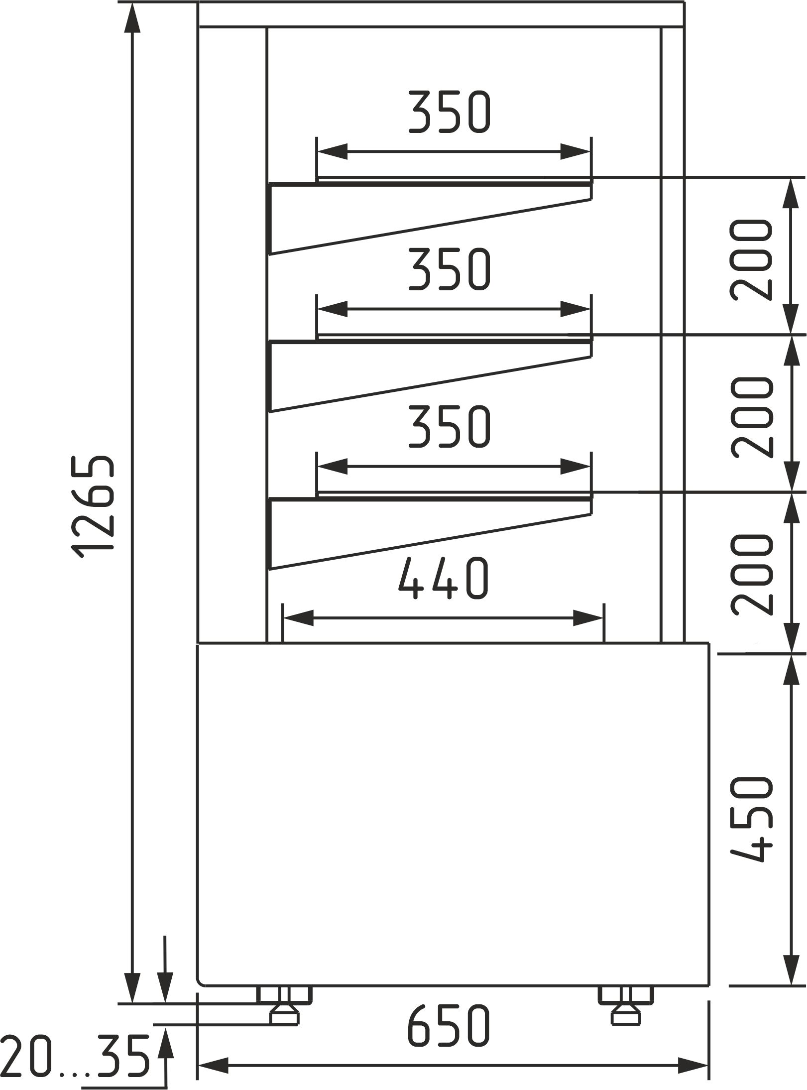 Витрина предназначена для работы в закрытых помещениях с естественной вентиляцией при температуре окружающей среды от +12 до +25 градусов Цельсия и относительной влажности не более 60%. В стандартной комплектации предусмотрены: