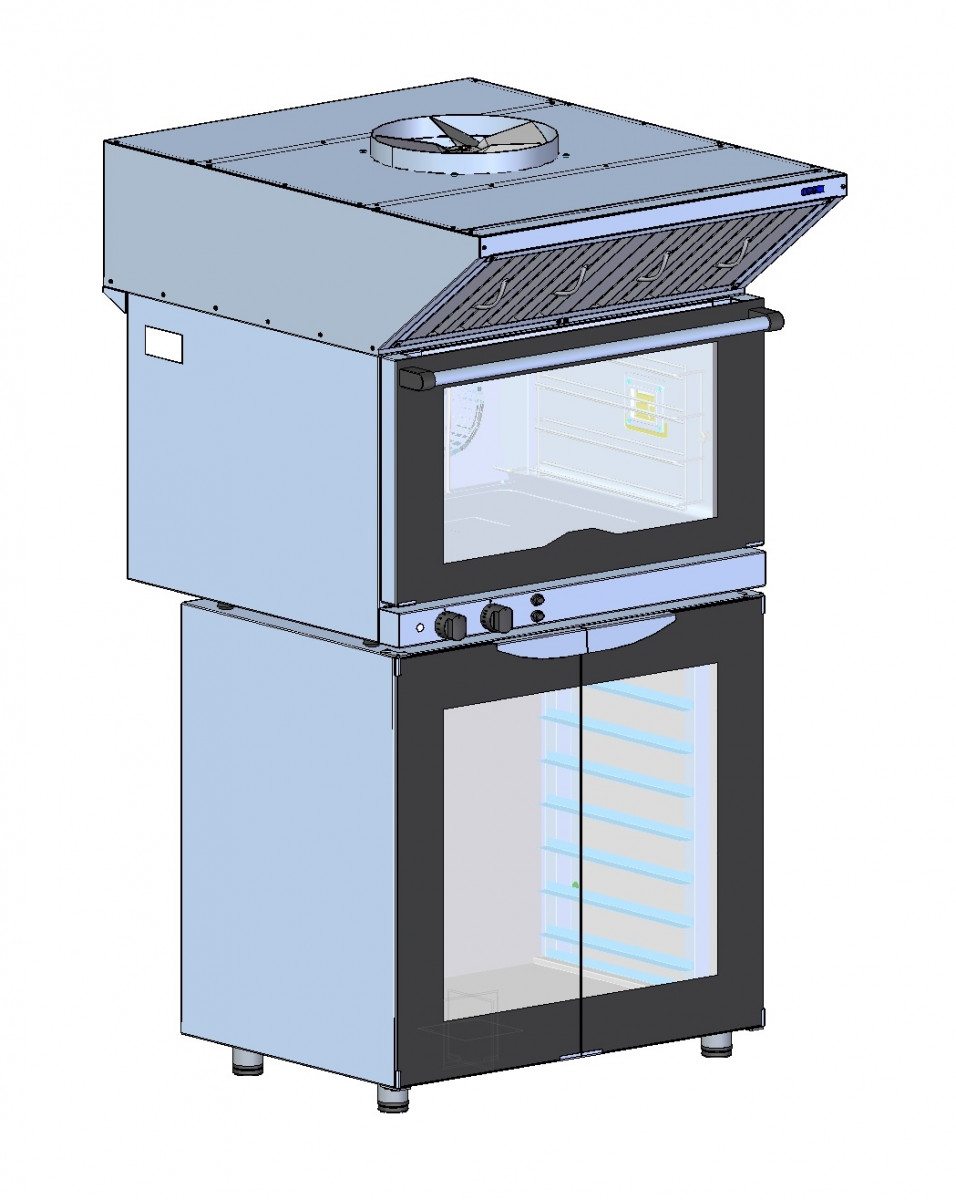 Работа устройства основана на принципе всасывания: разогретый воздух, насыщенный парами, попадает в зонт через осевой вентилятор, проходит через лабиринтный фильтр, где происходит конденсация вредных веществ, и затем очищенный воздух выводится наружу. Конденсат стекает в специальную ванну, что упрощает процесс обслуживания.